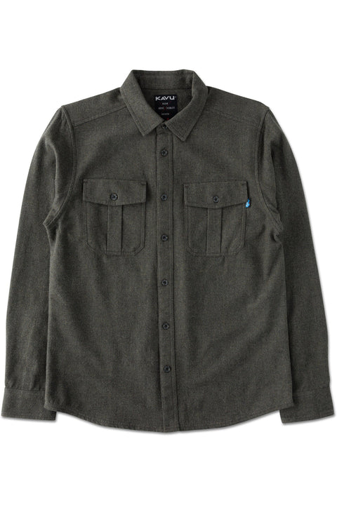 At KAVU they like to Get Burly Early. But every fun hog needs to have a Sunday best and the Trappers Peak fits the bill. Meet your new date night shirt, constructed with a 6.5oz cotton yarn dye brawny brushed plain weave - this is to say it's hard wearing yet soft to the touch. You may not have a sensitive side, but you fooled us.